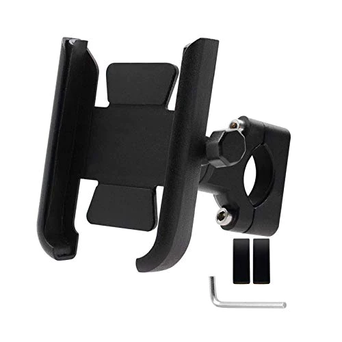 Details: This bicycle phone holder is made of aluminum alloy, which can hold the phone without worrying about falling off. It uses built-in screws for easy assembly.  Product net weight: 150G Scope of application: 4-6.5 inch mobile phones Handlebar installation range: 18mm-25mm