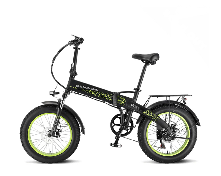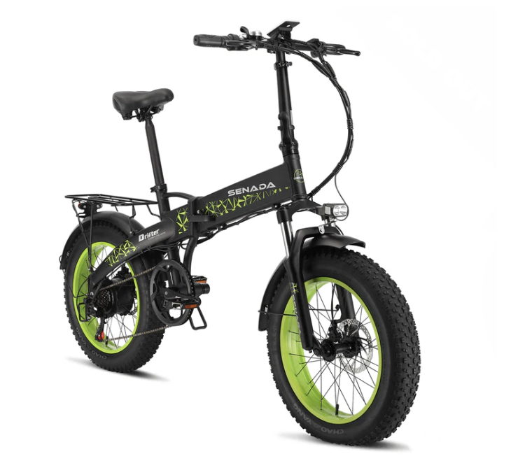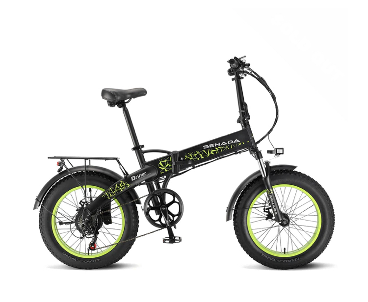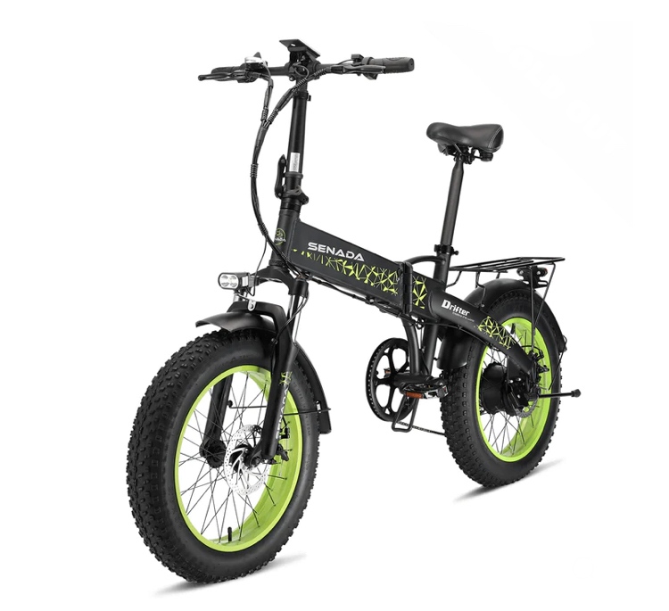 Senada Drifter UL Certified 500w 48v 14Ah 20″ Fat Tire Folding Electric Bike + Rear Rack & Fenders | Black and Green